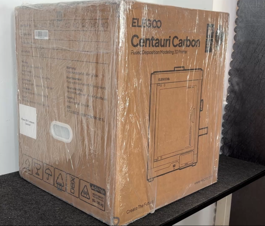 One thing I noticed right away, even before unboxing, is that the Centauri Carbon is noticeably heavier than the FlashForge AD5X (FlashForge’s new multi-color 3D printer). When I moved both printers side by side, the weight difference was obvious: the Centauri Carbon feels heavier and more solid, while the AD5X feels lighter and easier to pick up. That extra weight isn’t just about heft — it translates into better stability during high-speed CoreXY motion, helping reduce vibrations and ringing artifacts when the machine is in motion.