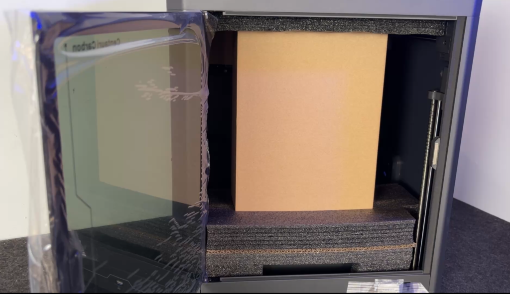 When I first opened the box, the setup process felt much less intimidating than many 3D printers I’ve used before. The Centauri Carbon comes mostly pre-assembled, so you’re not dealing with a pile of parts or a long build process. The first thing I did was lift off the top protective cover and look inside the chamber. That’s where Elegoo stores the accessories tool box during shipping. It’s a smart use of space, and everything inside was secured nicely with foam.