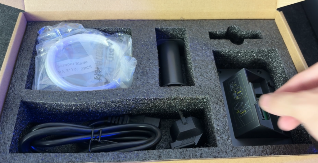 The printer arrived in very solid packaging, with everything inside well-protected by thick protective foam and neatly arranged accessories. It doesn’t feel like a flimsy budget machine — from the moment I lifted the box, you can tell this is a more serious piece of hardware compared to many entry-level FDM printers.