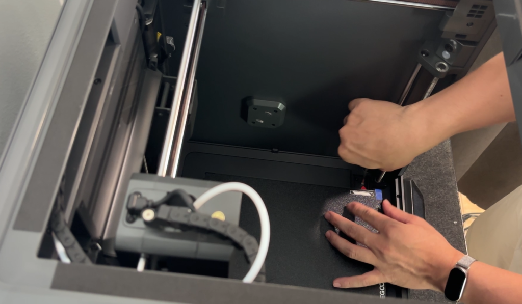 Because the machine arrives largely assembled with most key parts already installed and aligned, this part of the process is much simpler than on older CoreXY kits — you’re really just prepping it for power-on.