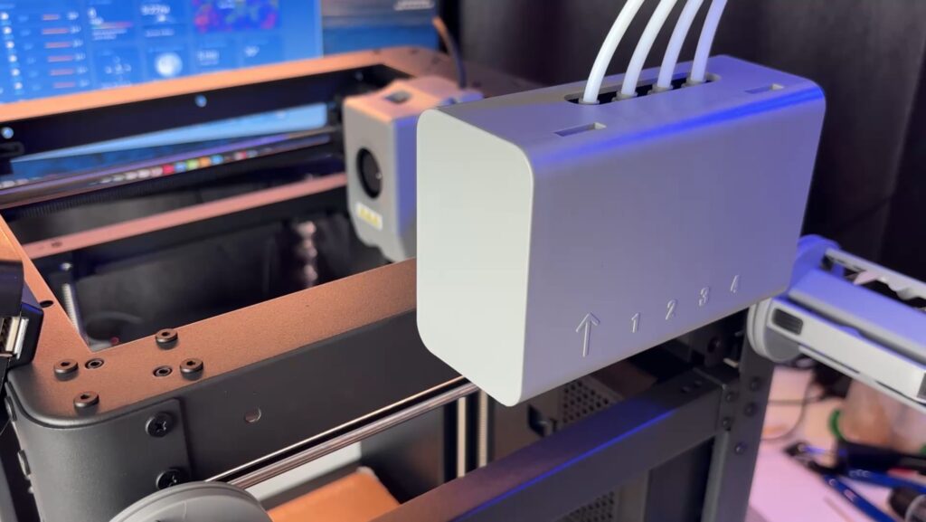 For multi-color setups, each filament slot is managed individually, making color assignment simple in the slicer. The light tension on the spool holders also helps prevent loose filament loops, which can reduce feeding issues during long prints.
